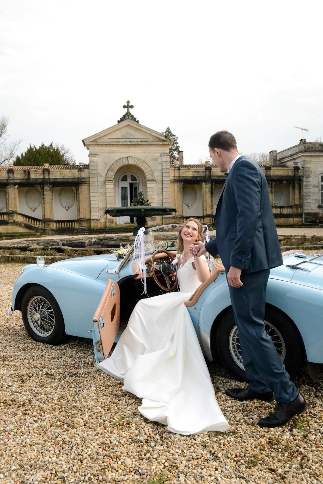 Les weekends de Mai à Octobre : FORFAIT 2 jours minimum. Le véhicule est stocké à Bordeaux, et le tarif comprend la livraison et la récupération jusqu’au Cap Ferret pour une organisation simplifiée le jour J. Prenez le volant d'une Triumph TR3! Idéale pour votre mariage, pour une balade, un tour auto, un film... Sa couleur bleue attire l'oeil et inspire instantanément joie et sympathie. Nous sommes très heureux de vous présenter ce modèle à la location. Ce véhicule fonctionne parfaitement, il est révisé tous les ans, et son état de conservation est impeccable.