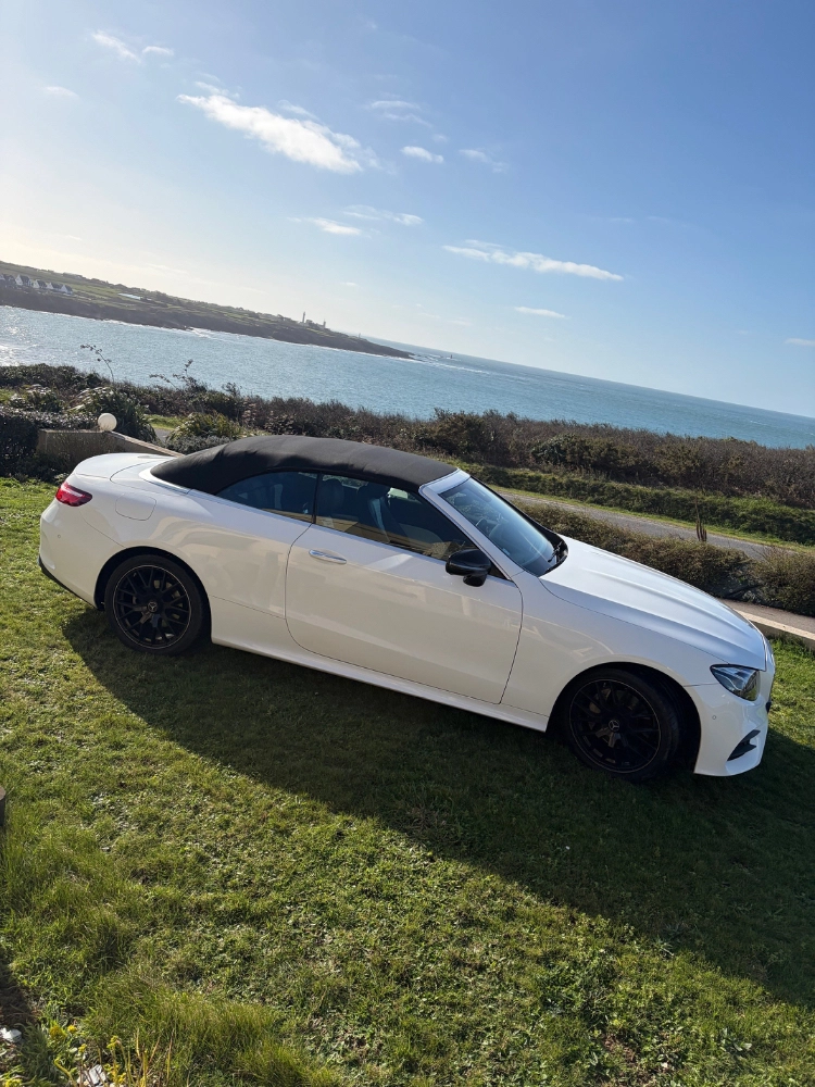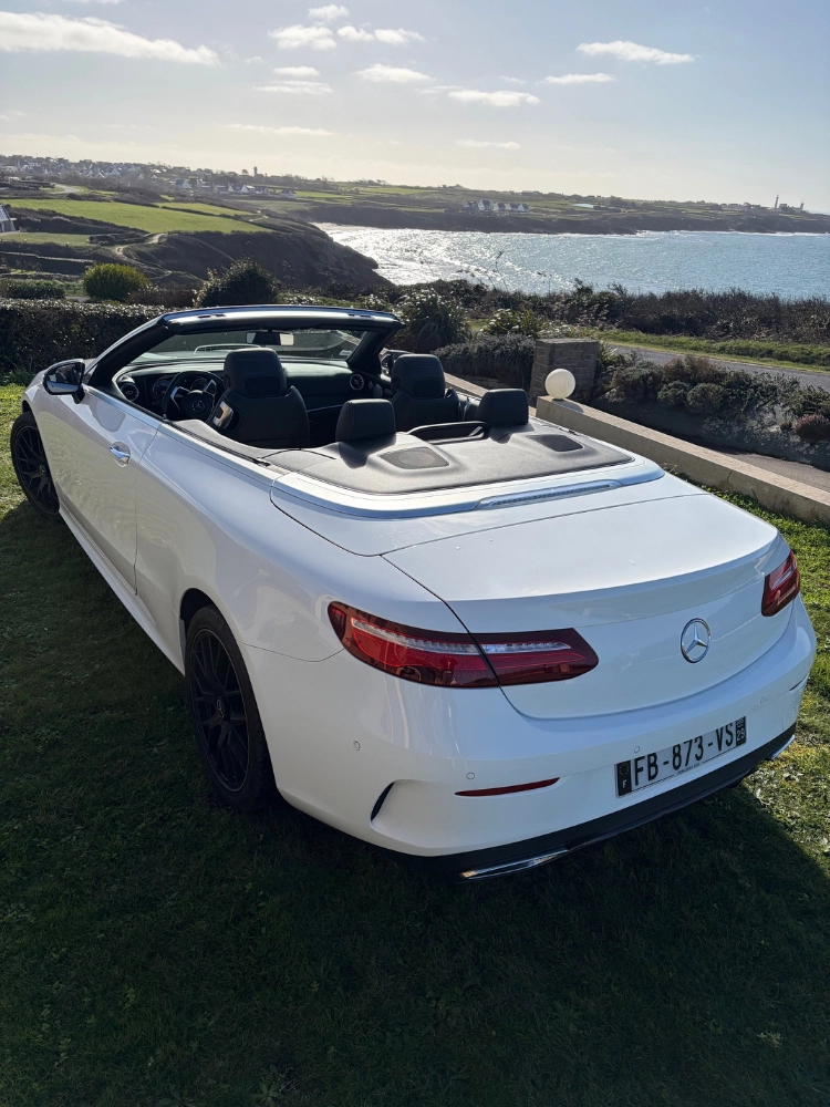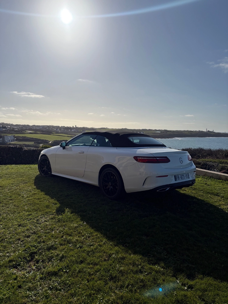 Superbe Mercedes Classe E Cabriolet Blanc – finition AMG Line, 194 chevaux de pure élégance. Avec ses jantes noires 19 pouces, ses sièges bi-colores noir et blanc et sa ligne sportive et raffinée, elle incarne parfaitement l’équilibre entre performance et confort. À bord, on voyage en véritable Business Class : silence, fluidité, équipements haut de gamme et sensation de liberté une fois la capote ouverte. Parfaite pour un mariage élégant, un week-end découverte, ou une escapade le long de la pointe du Finistère entre authenticité et paysages spectaculaires. C’est le véhicule idéal pour profiter d’une balade en plein air dans un cabriolet moderne, puissant et très bien équipé, qui attire les regards sans jamais en faire trop.