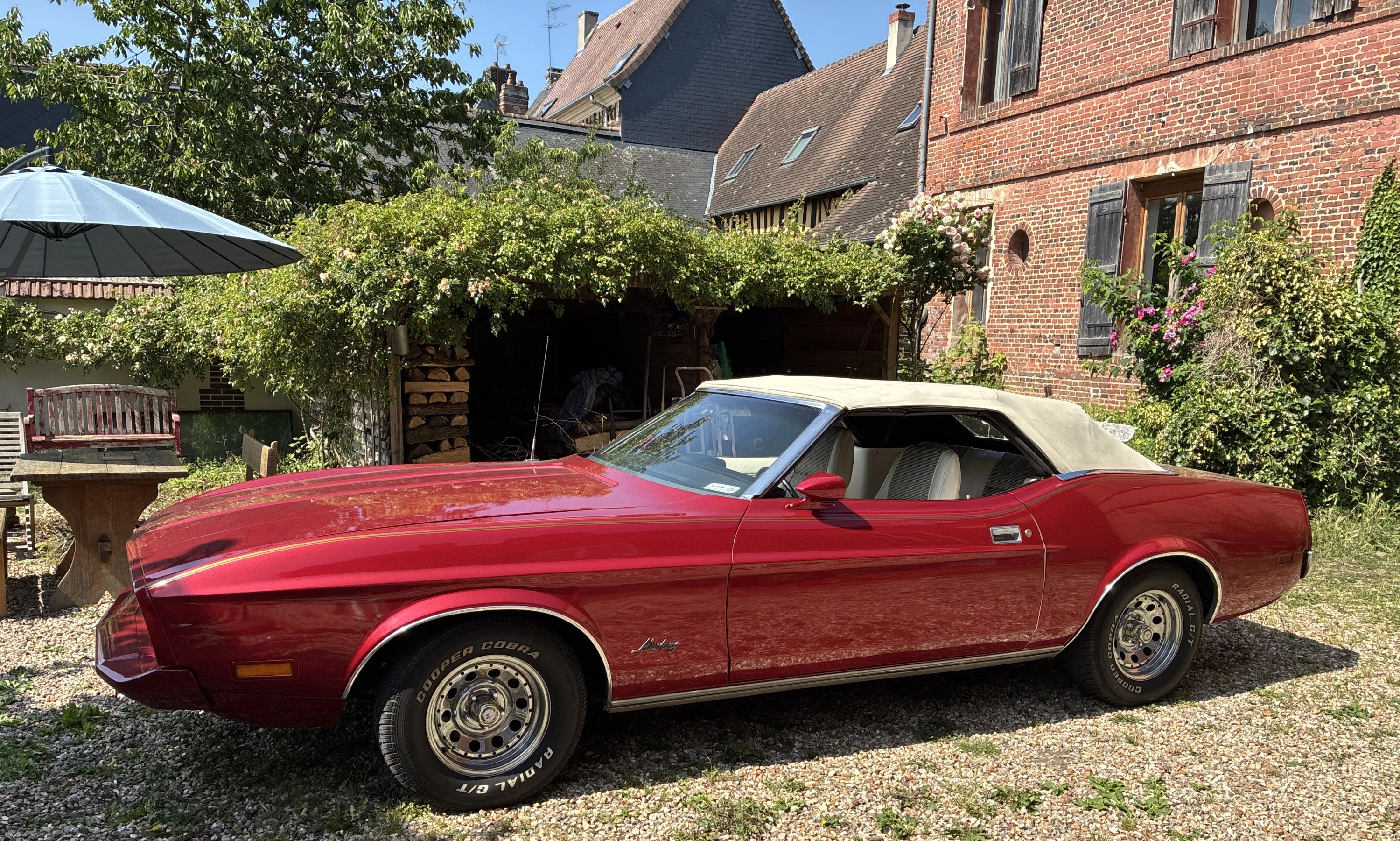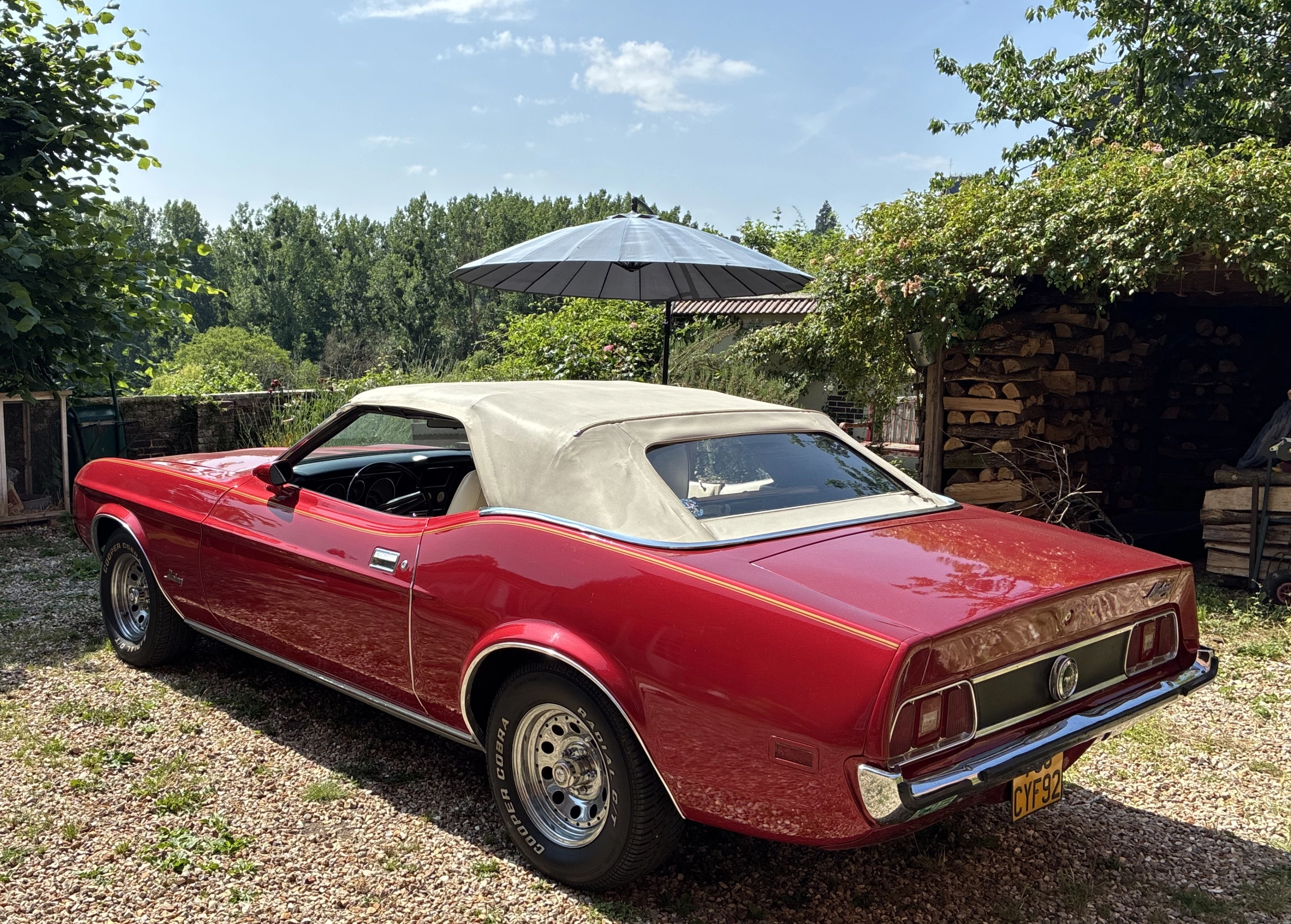 Mustang V8 351ci 5.7L, boite automatique pour cruising en liberté totale. Moteur, soubassement, amortisseur, allumage, etc ... tout a été remis à neuf en 2024, pas de mauvaise surprise. Prise en main très facile, juste la gabarit à maitriser.