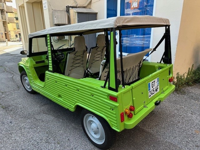 ⚡ Citroën Méhari – L’Évasion Découvrez la French Riviera autrement !!! Changez d’air avec la Citroën Méhari L’Évasion. Sa teinte unique et sa conduite électrique fluide offrent un sentiment de liberté totale sur les routes méditerranéennes.