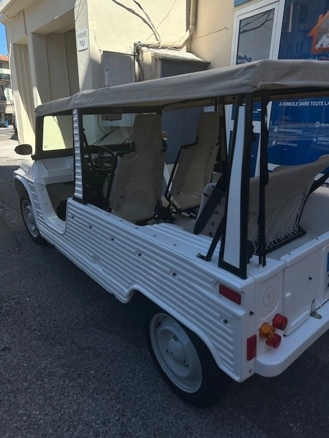 La Citroën Méhari – La Monégasque incarne l’élégance et le raffinement de la Principauté. Avec sa carrosserie blanche et son toit gris, elle reflète le chic intemporel de Monaco et l’esprit glamour de la Côte d’Azur. Entièrement électrique (modèle 2024), elle allie le charme vintage d’une voiture iconique au confort moderne d’une conduite fluide, silencieuse et sans émissions. Dotée d’un toit ouvrant amovible pour profiter du soleil et de portes latérales pour plus de confort, La Monégasque est idéale pour un mariage, un shooting photo ou une balade raffinée sur la Riviera.