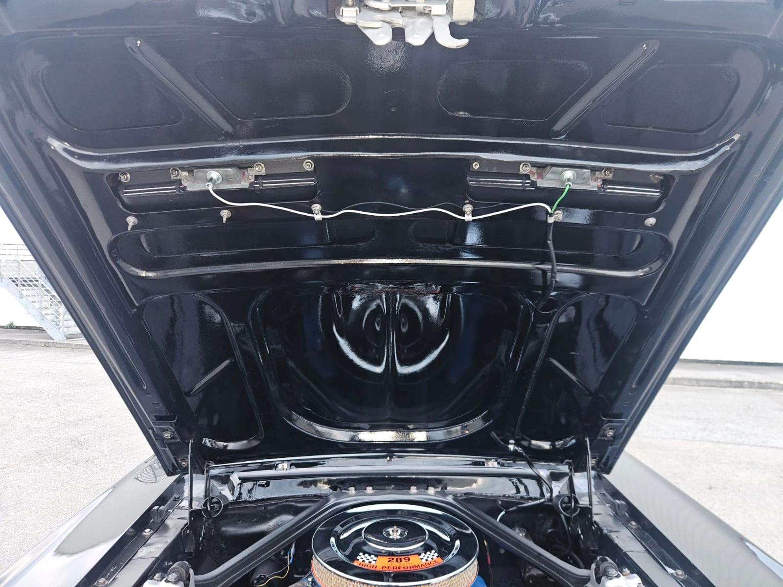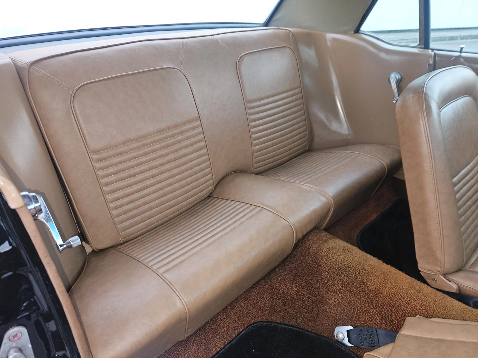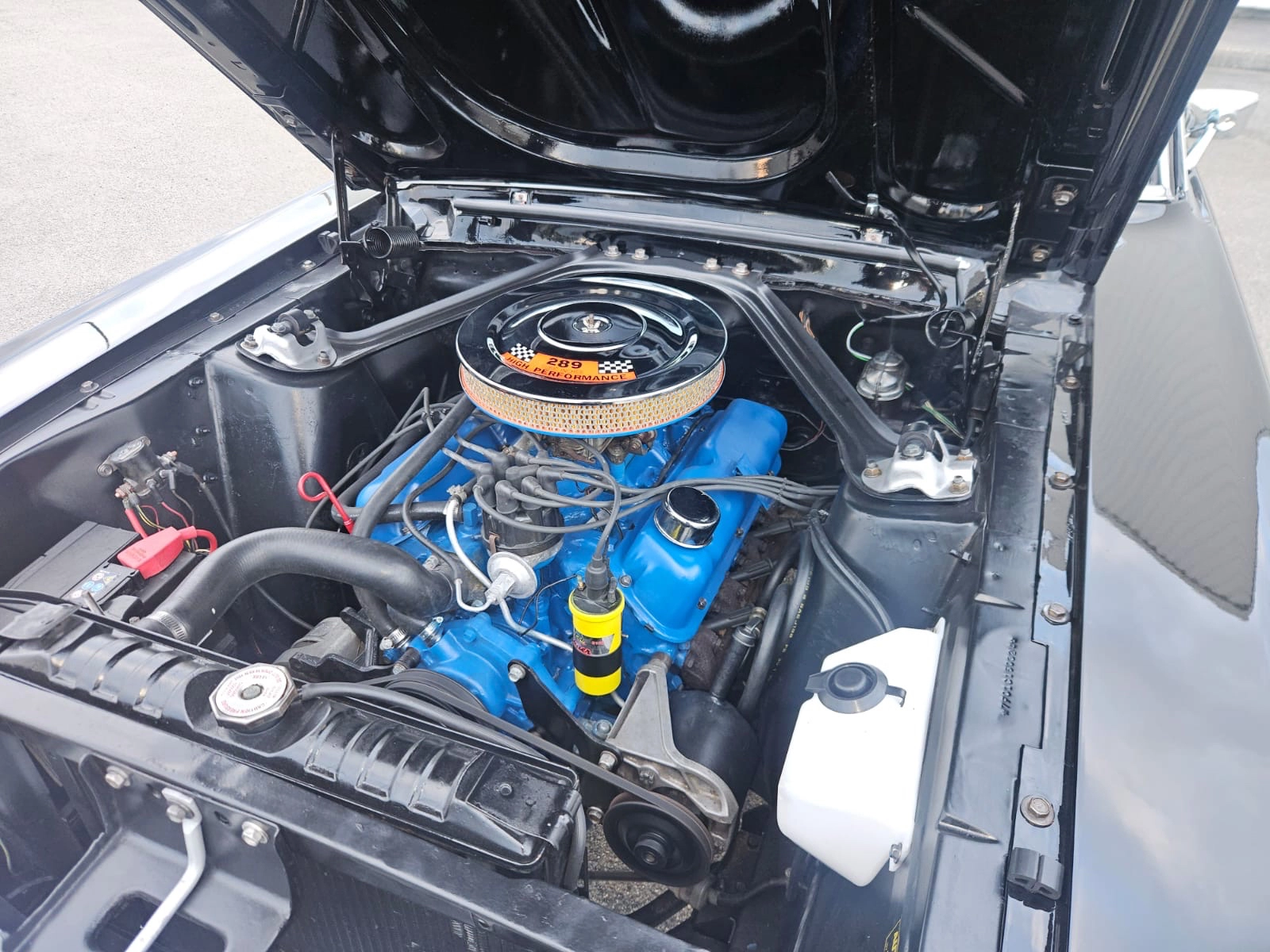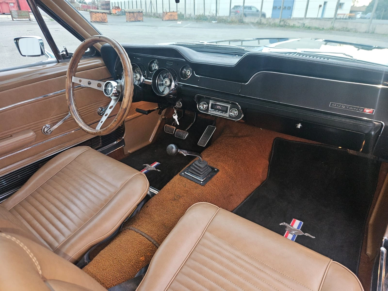 Caractéristiques techniques – Ford Mustang Coupé 1967 Marque : Ford Modèle : Mustang Année : 1967 Origine : Livrée neuve en Californie Carrosserie : Coupé Couleur extérieure : Noir Intérieur : Caramel Motorisation Moteur : V8 289 cubic inches (4.7 L) Architecture : V8 atmosphérique Énergie : Essence Sonorité : Typique V8 américain, profonde et envoûtante Transmission Boîte de vitesses : Manuelle Transmission : Propulsion (roues arrière motrices) Châssis & comportement Direction assistée Freinage assistée Tenue de route saine et confortable, adaptée à une conduite plaisir Véhicule agréable aussi bien en ville que sur route Rénovation & état Restauration complète récente Carrosserie intégralement rénovée Mécanique révisée Intérieur restauré dans le respect de l’origine Véhicule fiable, prêt à rouler