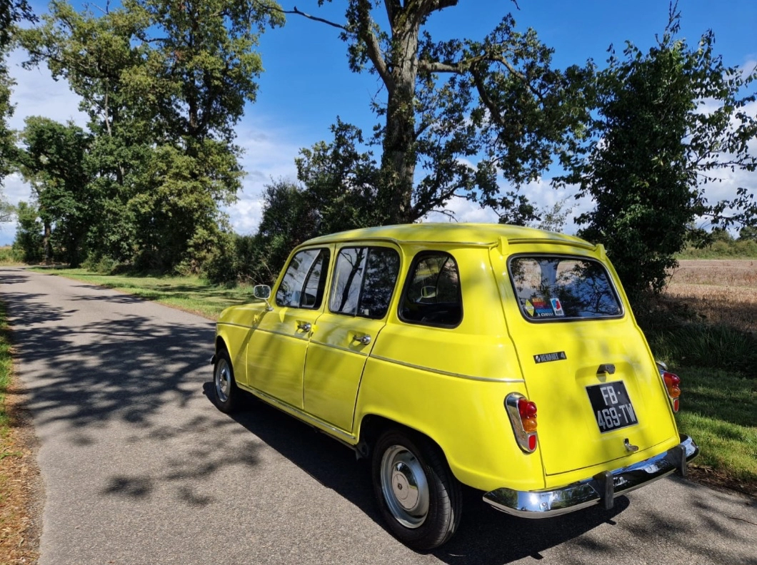 Le véhicule date de 1974. Il a été racheté en 2010 par un retraité qui l’a entièrement refaite à l’identique de 1974 et repeinte d’un jaune années 70 ! Effet garanti.